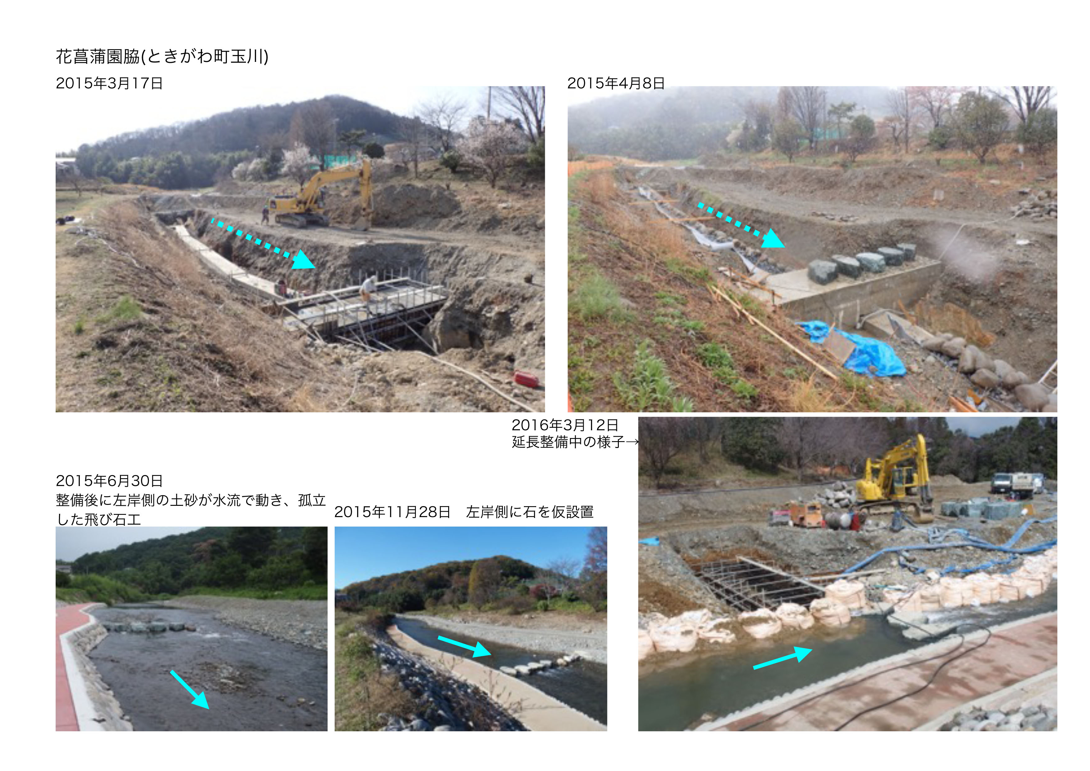 写真2⇒ときがわ町花菖蒲園前の護岸・飛び石チェック(2015~2016年時)